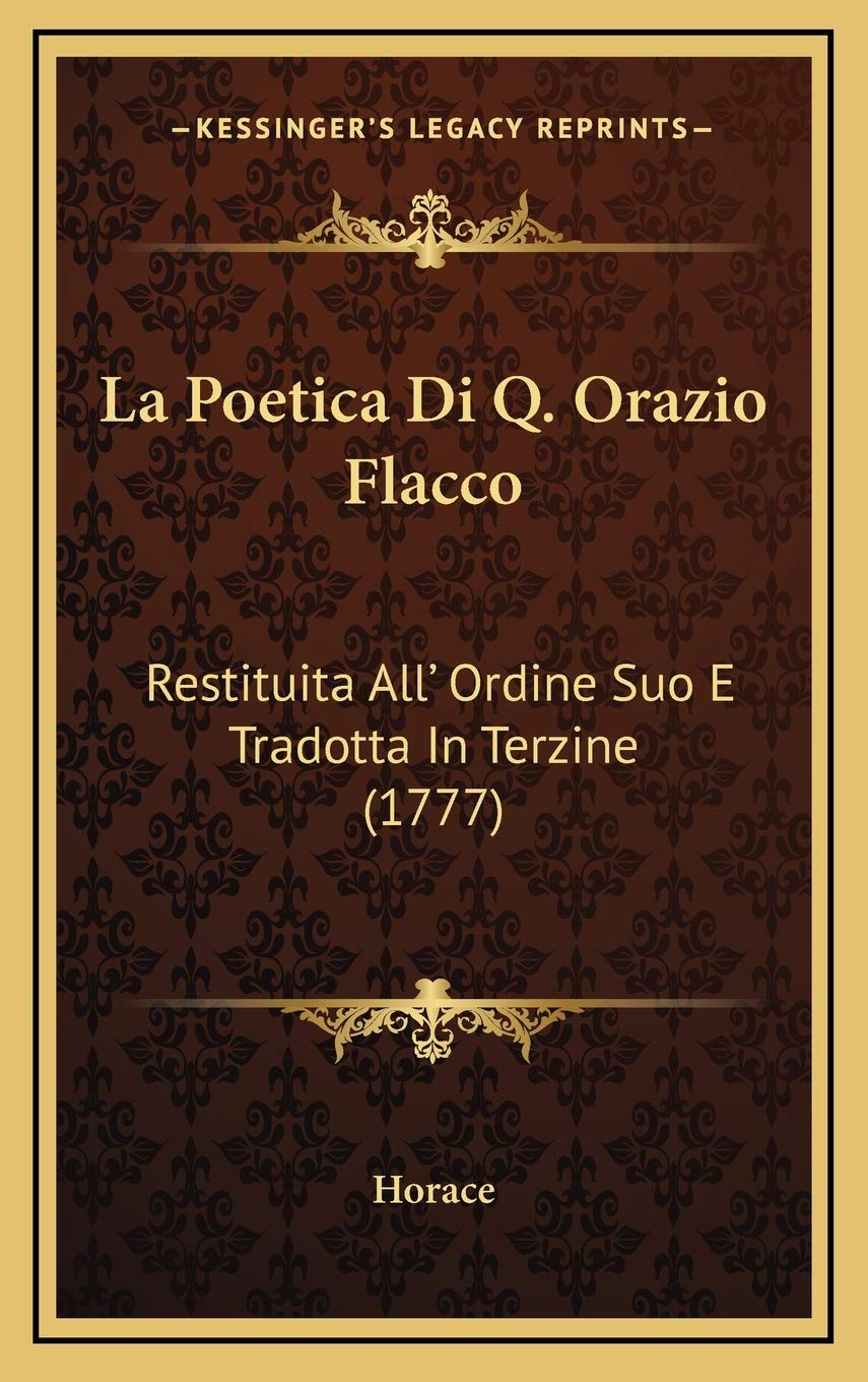 BIANCHI Cornici e Stampe - Prints and Frames, Siena Italy ORAZIO: ARTE POETICA . Introduzione; Ποίησις; Ποίημα; Ποιητής . Introduzione: La Epistula ad Pisones, meglio nota come Ars poetica, una sorta di trattato in versi dedicato alla famiglia dei Pisones, della gens Calpurnia, insigne famiglia romana nella quale Orazio riconobbe di certo l amore delle lettere e la protezione dei letterati. ORAZIO SCRISSE QUELLA "POETICA" - 3 lettere - Cruciverba e ... La "poetica" è di Orazio Quella "poetica" è di Ovidio Orazio Coclite affrontò da solo le sue truppe Le liriche di Orazio Le liriche d'Orazio Sono celebri quelle di Orazio Sono famose quelle di Orazio Orazio che si battè sul Ponte Sublicio (iniz.) Orazio eroe inglese Le consonanti di Orazio L'"arte" di Orazio L'Orazio che combatté contro Porsenna