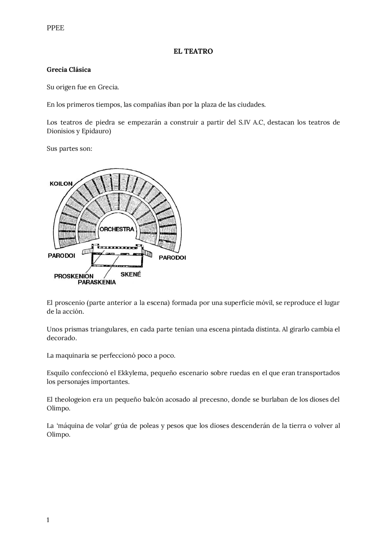 Máquinas teatrales | Teatro | Tragedia griega f Mquinas teatrales 41 totalidad de las mquinas de la escena: mquinas de relm- pagos y truenos o dispositivos para hacer que los muertos se desvaneciesen en el infierno. Con todo, la mquina del teatro tico clsico era un dispositivo concreto ubicado sobre la entrada a la izquierda del escenario. Los dioses y los hroes