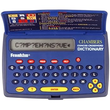 Franklin Chambers Crossword Dictionary CWR319 : Amazon.co ... This crossword dictionary is small enough to carry, yet boasts a large screen and big buttons. More than 500,000 potential solutions to cryptic and quick clues and over 19,600 one-stop entries, with both synonyms and encyclopaedic material. Features includes anagram solver, phonetic spell correction and many more. Requires 2 x AAA batteries.