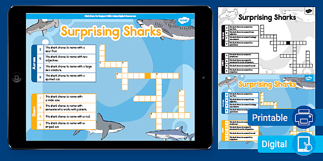 Some sharks Crossword Clue | Wordplays.com Some sharks Crossword Clue The Crossword Solver found answers to Some sharks crossword clue. The Crossword Solver finds answers to classic crosswords and cryptic crossword puzzles. Enter the length or pattern for better results. Click the answer to find similar crossword clues . Enter a Crossword Clue Sort by Length # of Letters or Pattern Some sharks - crossword puzzle clues & answers - Dan Word Some sharks - crossword puzzle clues & answers - Dan Word Some sharks Today's crossword puzzle clue is a quick one: Some sharks. We will try to find the right answer to this particular crossword clue. Here are the possible solutions for "Some sharks" clue. It was last seen in Daily quick crossword. We have 1 possible answer in our database. Shark Wordsearch, Vocabulary, Crossword, and More - ThoughtCo However, sharks are fish, not mammals. They breathe through gills rather than lungs, and they don't have bones. Instead, their skeleton is made up of a firm, flexible material called cartilage (like a person's ears or nose) which is covered by scales. They have several rows of teeth. When they lose a tooth, another grows back to take its place. Some Sharks - Crossword Clue Answers - Crossword Solver The crossword clue Some sharks with 5 letters was last seen on the March 04, 2020. We think the likely answer to this clue is MAKOS. Below are all possible answers to this clue ordered by its rank. You can easily improve your search by specifying the number of letters in the answer. Refine the search results by specifying the number of letters.